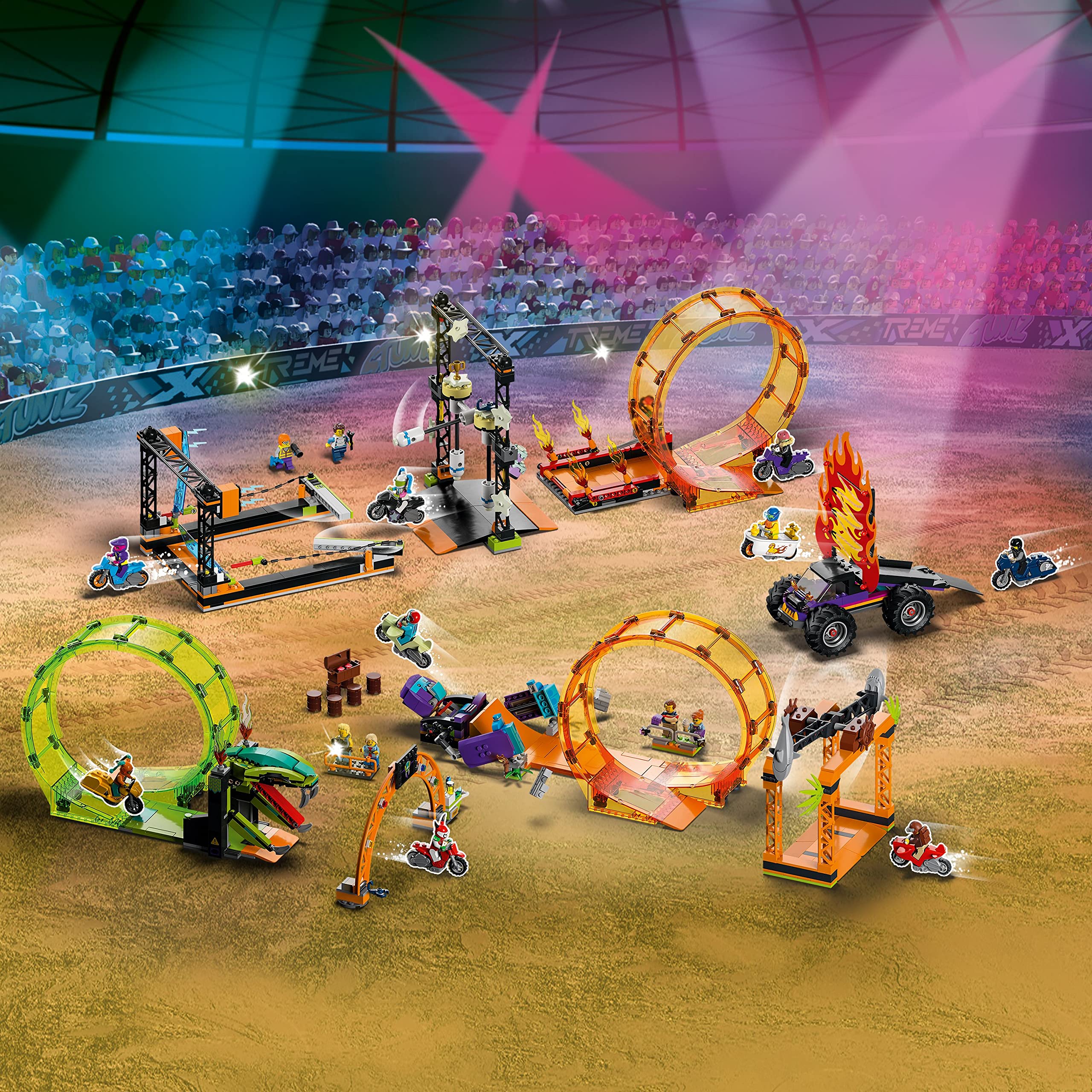 - This LEGO City Stuntz set features a stunt course with loop, springboard and mechanical chimpanzee stunt prop and a flywheel-powered stunt bike
