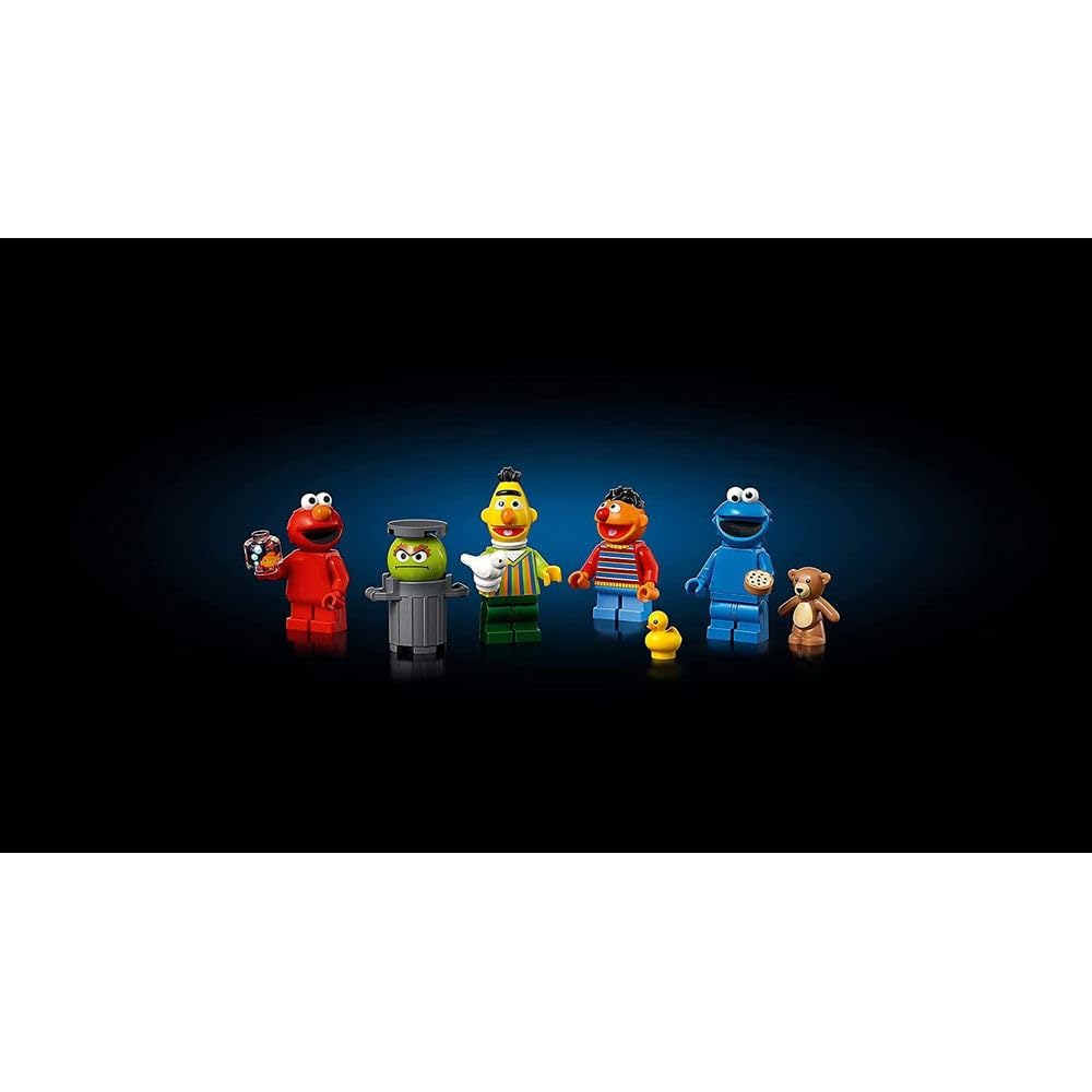 - The set features Elmo, Cookie Monster, Bert and Ernie minifigures, plus Oscar the Grouch and Big Bird figures; Also includes Slimey the Worm, Dorothy the Goldfish, Radar the Teddy Bear and Rubber Ducky figures