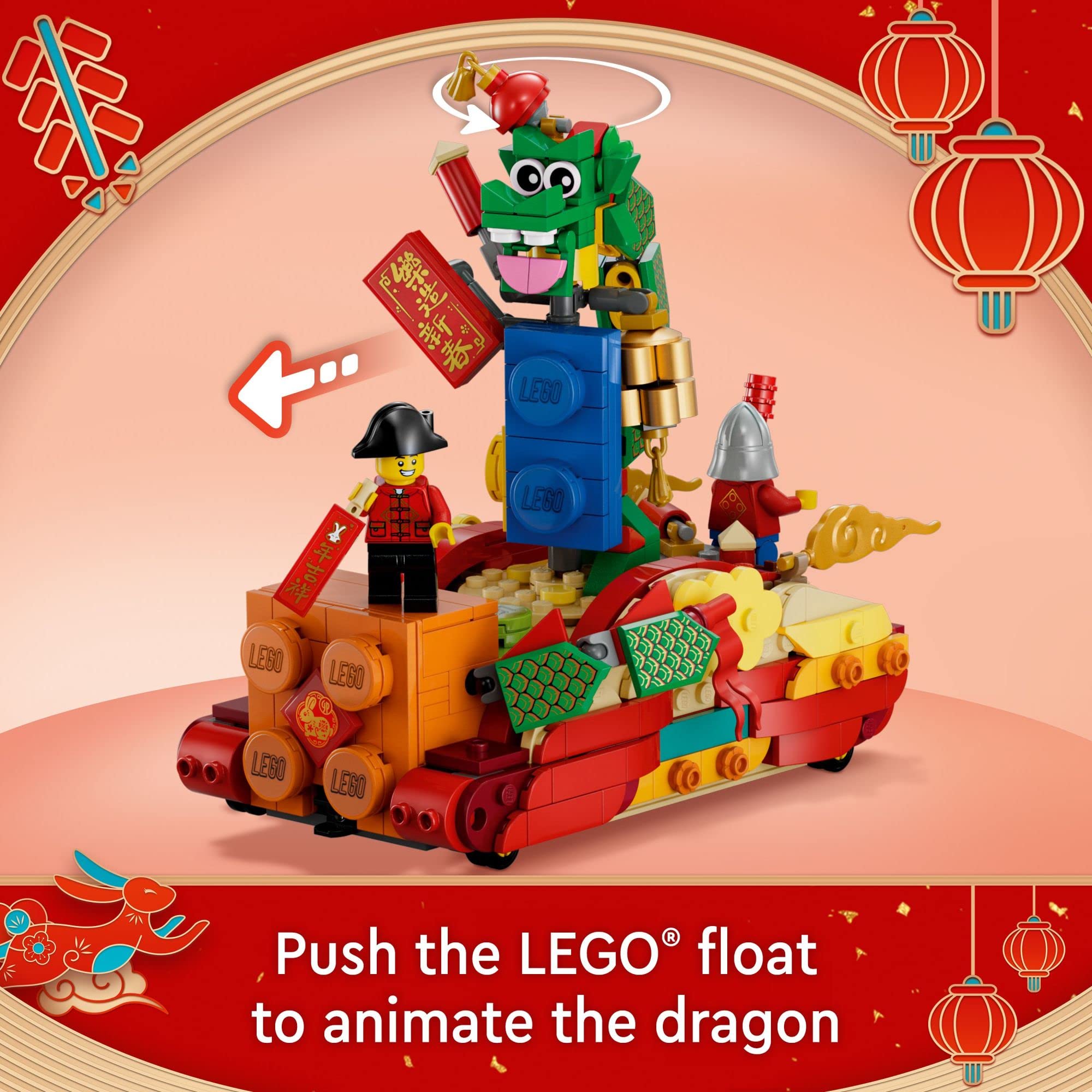 - Lunar New Year play-and-display set (80111) – LEGO builders can recreate the joyous atmosphere of a traditional Lunar New Year Parade with this set featuring 3 colorful, connectible toy floats