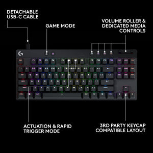 Logitech G PRO X TKL Rapid Tenkeyless Wired Gaming Keyboard with Magnetic Analog Switches, RGB - Black, PC Gaming Keyboards, Pro