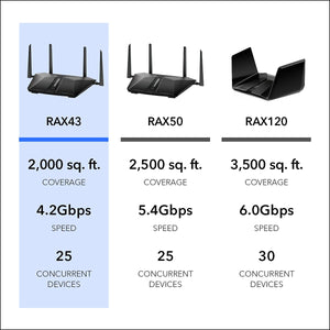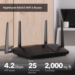 NETGEAR Nighthawk WiFi 6 Router (RAX43) - Security Features, 5-Stream Dual-Band Gigabit Router, AX4200 Wireless Speed (Up to 4.2 Gbps), Covers up to 2,500 sq.ft. and 25 Devices